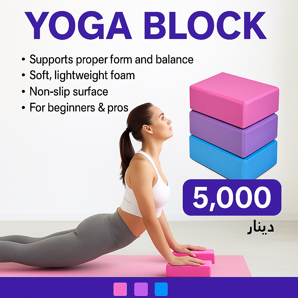 نقدم لكِ "بلوك اليوغا – Yoga Block"، الأداة الأساسية التي تمنحكِ الدعم اللازم والثقة لأداء التمارين بشكل صحيح وآمن! سواء كنتِ مبتدئة تبحثين عن مساعدة في الوصول إلى الوضعيات، أو محترفة تسعين لتعميق تمدداتكِ، هذا البلوك هو خياركِ الأمثل.