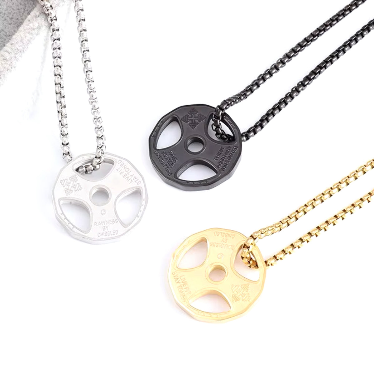 قلادة قرص صغير بتصميم مثالي يعبر عن الشغف بالرياضة، خاصة لرواد صالات الألعاب الرياضية ولاعبي كمال الأجسام.
