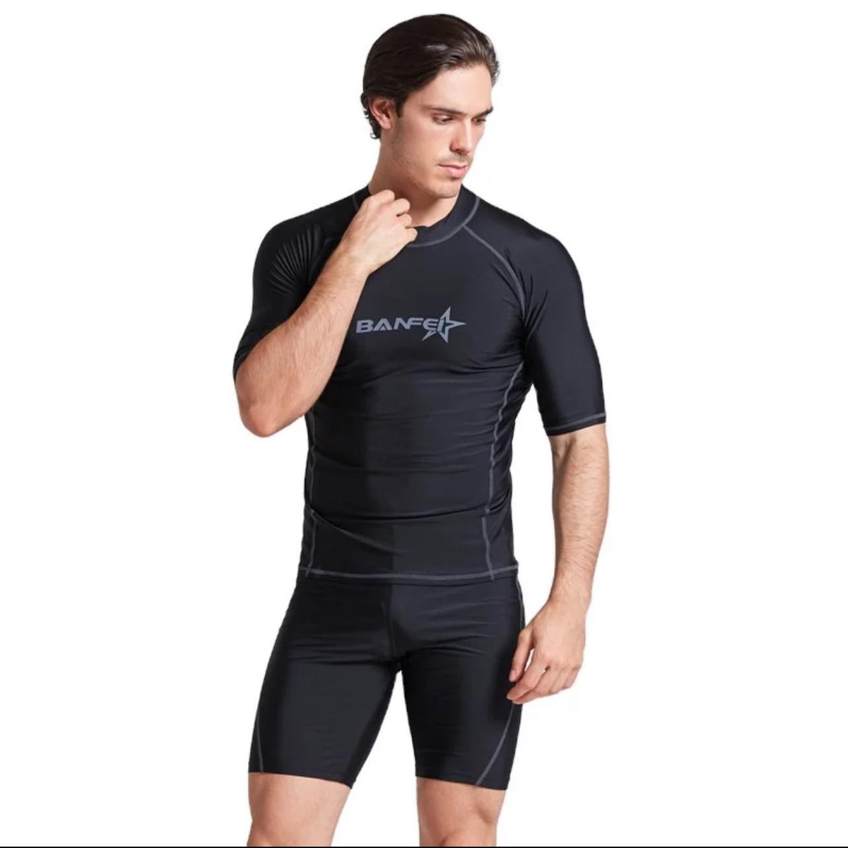 تراك السباحة هذا ليس مجرد زي رياضي، بل هو استثمار في راحتك وأدائك. يجمع بين التصميم العصري والتقنيات المتطورة ليوفر لكَ أفضل تجربة سباحة ممكنة، مع حماية من أشعة الشمس وضمان الجفاف السريع بعد كل مغامرة مائية.